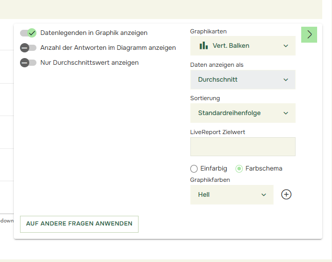 Mit Graphikarten können Sie den Diagrammtyp für die Frage festlegen. Wir haben es Ihnen leichter gemacht, sich für einen Diagrammtyp zu entscheiden, indem wir Diagrammtypen, die mit der gewählten Frage nicht kompatibel sind, ausblenden.