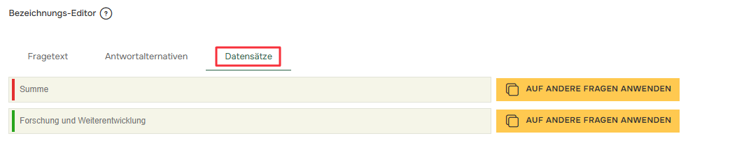 Wenn Sie Vergleiche in der Frage haben, erhalten Sie eine zusätzliche Registerkarte namens Datensätze. Hier können Sie den Namen der verschiedenen Vergleiche ändern.
