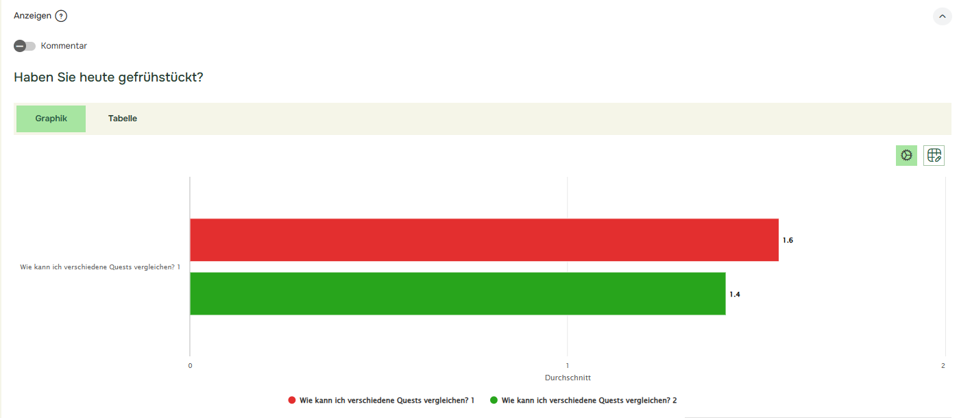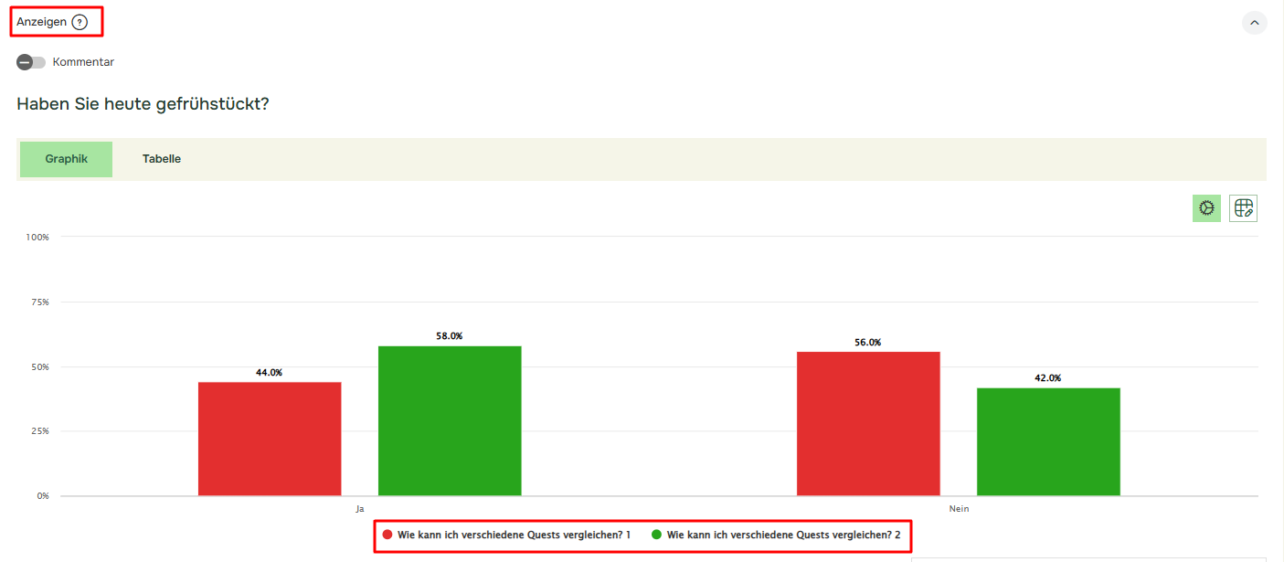 Nachdem Sie den Vergleich auf die Fragen angewendet haben, werden die daraus resultierenden Vergleiche im Bereich Anzeigen sichtbar: