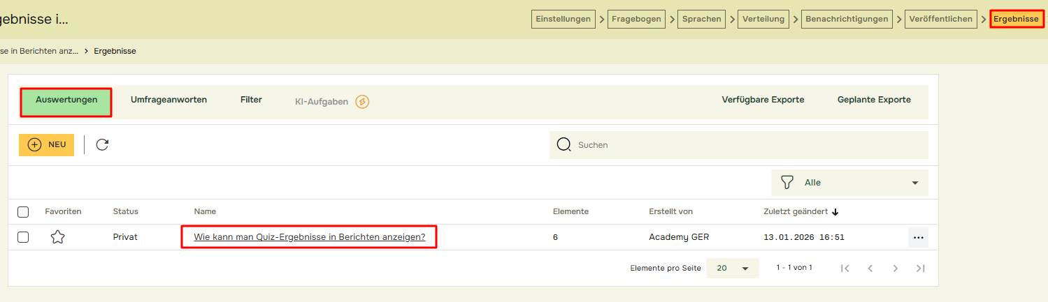Wie kann man Quiz-Ergebnisse in Berichten anzeigen?