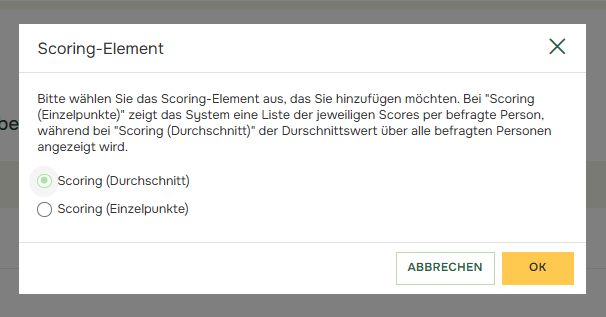 In diesem Beispiel wurde nun der Punktedurchschnitt (Scoring Durchschnitt) der Befragten hinzugefügt.