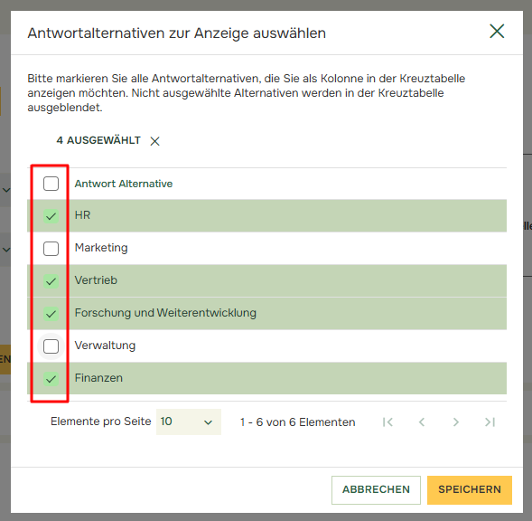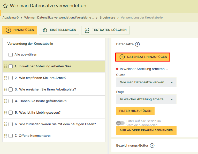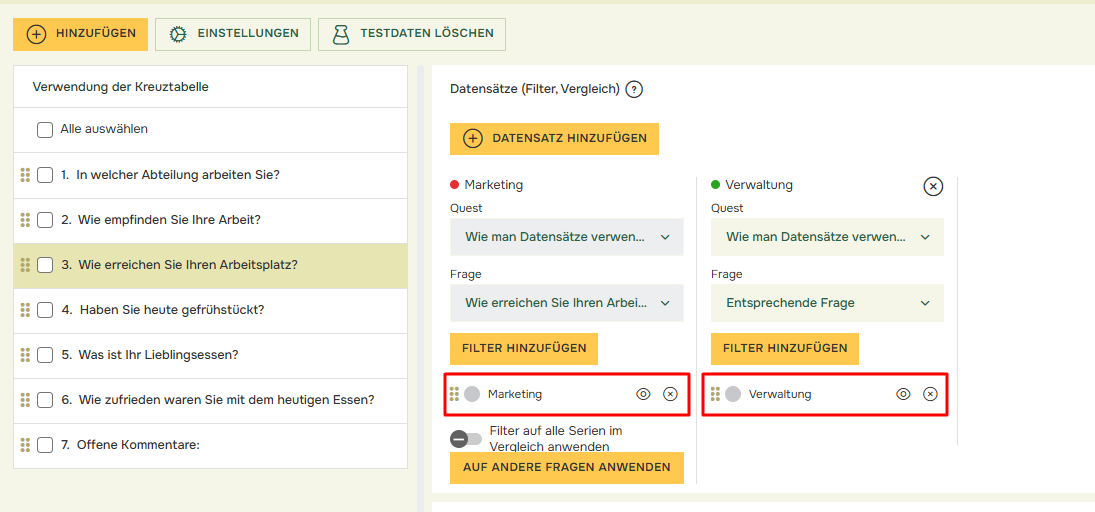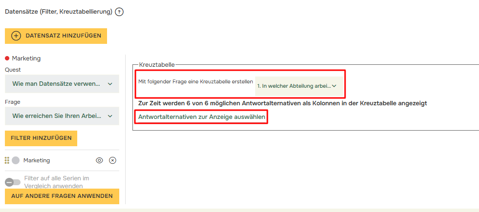 Wenn Sie Ihren Vergleich auf mehrere Fragen anwenden möchten, klicken Sie auf „Auf andere Fragen anwenden“ und markieren Sie die gewünschten Fragen:
