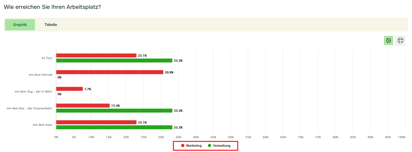 Im obigen Beispiel haben wir einen Vergleich zwischen den Filtern „Marketing“ und „Verwaltung“ hinzugefügt: