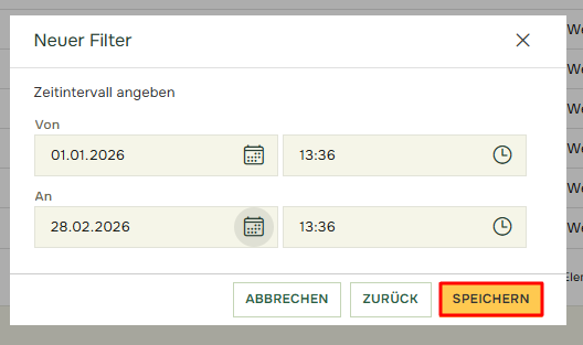 Nachdem Sie den Zeitfilter ausgewählt haben, legen Sie bitte das Zeitintervall fest, für das Sie die Befragten gruppieren möchten, und klicken Sie auf „Speichern“: