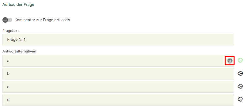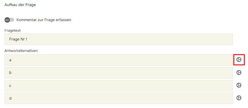 Klicken Sie auf das Zahnrad hinter der Antwortalternative.