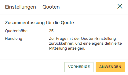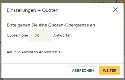 • Um eine Obergrenze für die Antwortalternativen festzulegen, geben Sie im Feld „Quotenhöhe“ ein, wie viele Antworten Sie sammeln möchten.