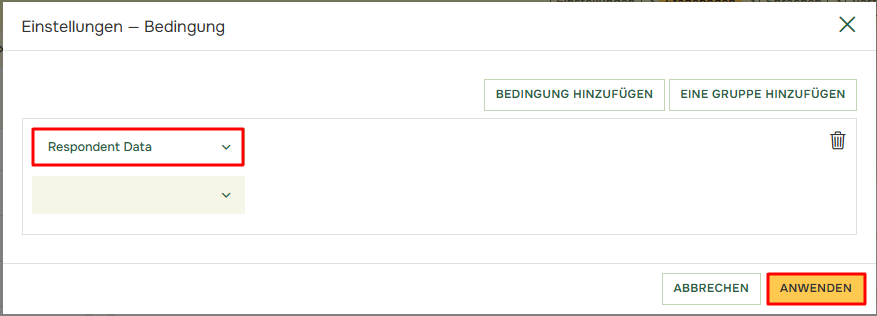 - Wählen Sie anstatt „Fragen“ „Respondent Data“ (Teilnehmerdaten) aus dem Dropdown-Menü aus.