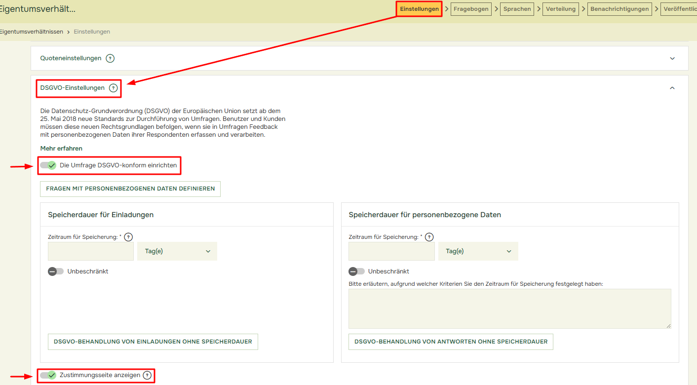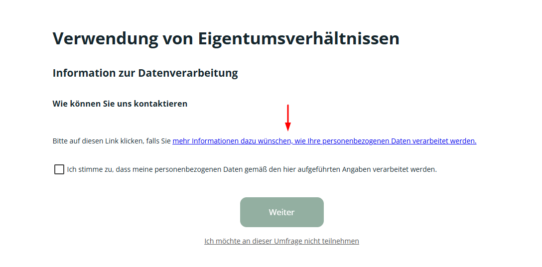 Der Teilnehmer kann die übrigen Felder der Einwilligungsseite anzeigen lassen, durch das klicken auf „mehr Informationen dazu wünschen, wie Ihre personenbezogenen Daten verarbeitet werden“