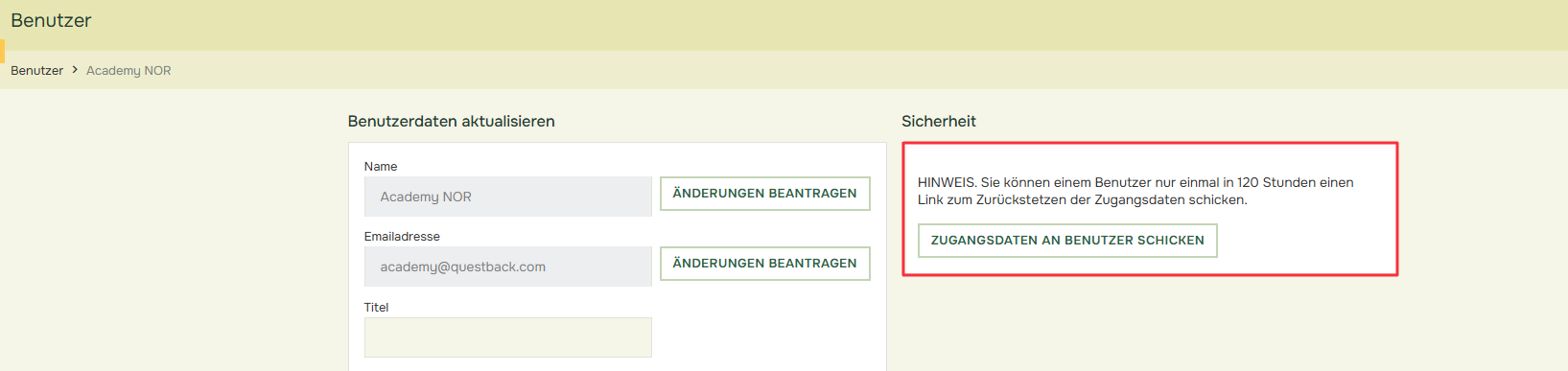 Klicken Sie auf den Namen des Benutzers den Sie bearbeiten wollen aus der Liste aus und klicken Sie dann Zugangsdaten an Benutzer schicken