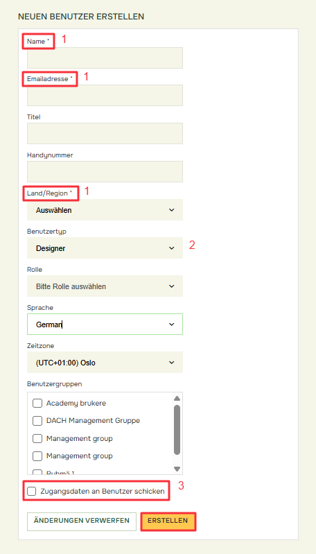 - Unter Benutzertyp können Sie zwischen „Designer“, „Superuser“ und „Reporter“ wählen. Bitte beachten Sie, dass nur ein Superuser Benutzer anlegen und löschen kann.