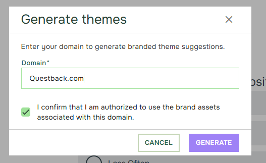 Before we can generate theme suggestions, we need you to confirm that you are authorized to use the brand associated with your domain.