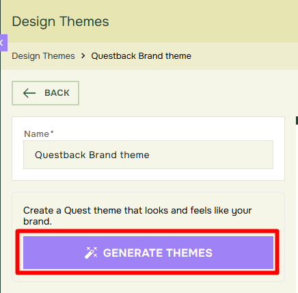 • After applying a suggestion, you can continue adjusting the theme if needed. For example, you may want to review colors, logo placement, add fonts, or other design elements before using the theme in a live Quest. This gives you a faster starting point while still allowing you to fine-tune the result!