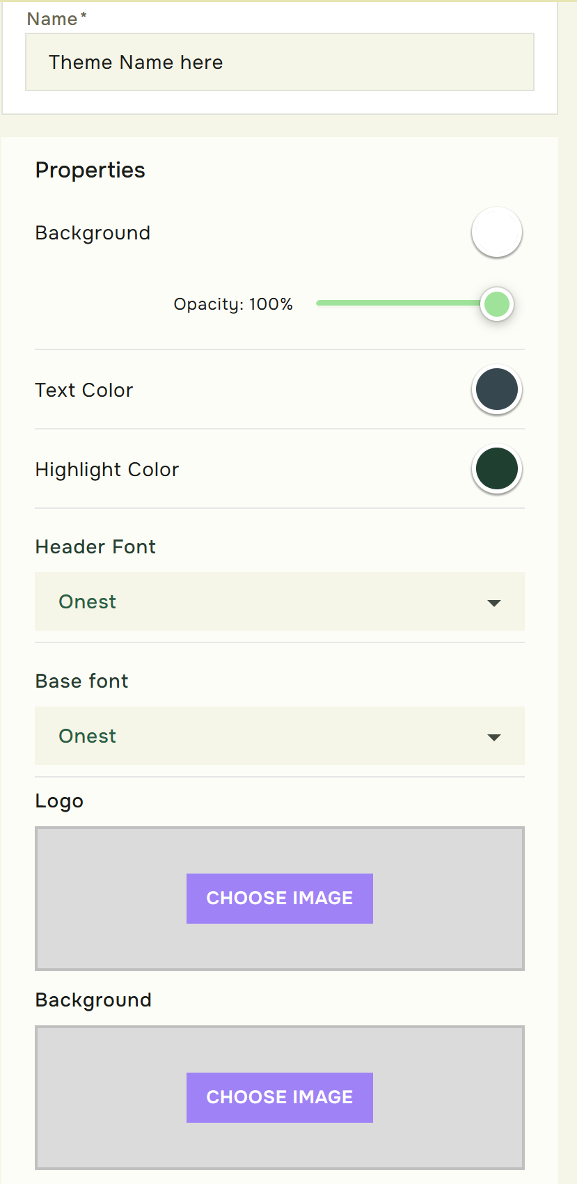 You have several options when it comes to the customizing. Start by writing the name of your theme. After that you may edit or add the following: