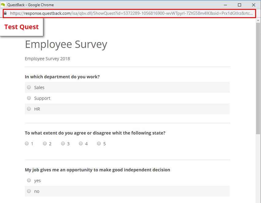 The Test & Publish feature allows you to control when your quest becomes accessible to respondents and how long it will be accessible. In addition to the availability settings like when Quest will be published and stoppet, you have the possibility to Generate Test Data in order to Validate and Test the Quest.