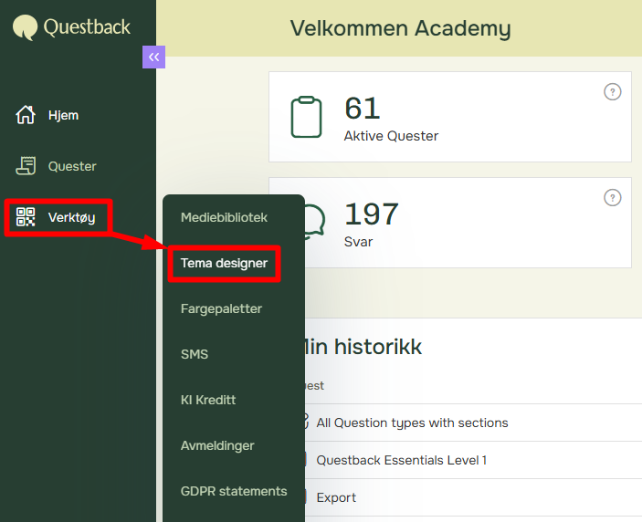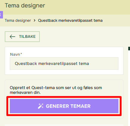 Et merkevaretilpasset Quest-tema hjelper deg med å tilpasse Questen til selskapets visuelle identitet ved automatisk å bruke bedriftens farger og logo. Egendefinerte temaer kan opprettes i Tema Designer og deretter brukes i én eller flere Quester.